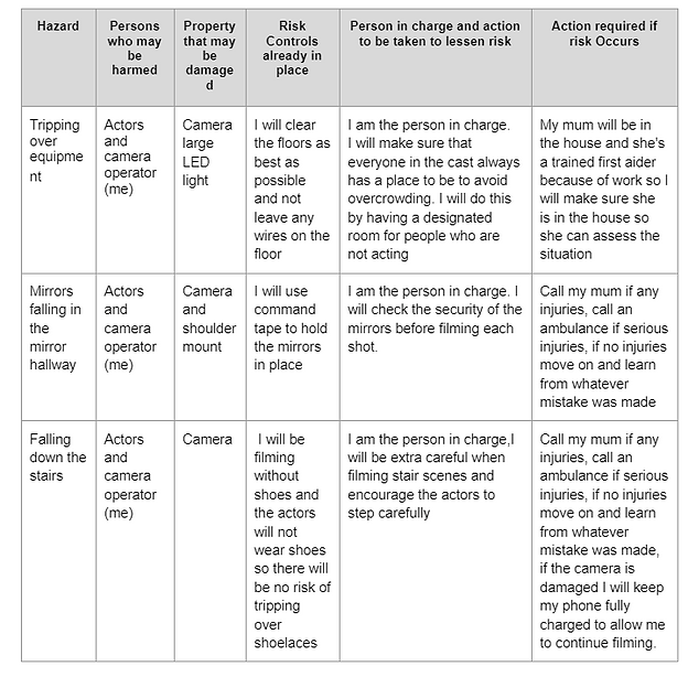 Unfortunately an issue I had is that my mum said I can not soak her nice floor with fake blood. I did not want to argue with her about this so I decided to rewrite the opening and end scene to have the main character die from jumping out of a window instead. I liked this more in the end as I felt the visual was more powerful and I liked the idea of having a big thud sound followed by a scream which draws people to the action so I was actually happy to have had this issue.